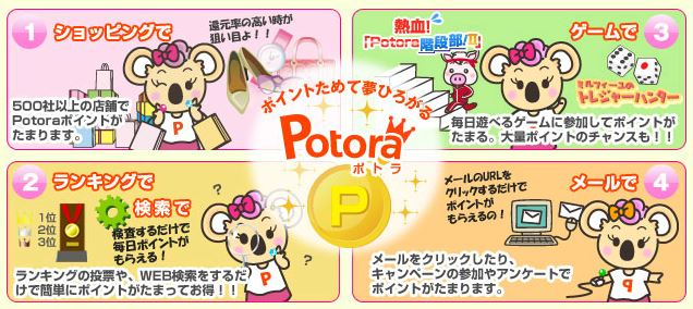Potora(ポトラ)はNTTコムオンライン・マーケティング・ソリューションが運営するポイント&ランキングサイトです。
