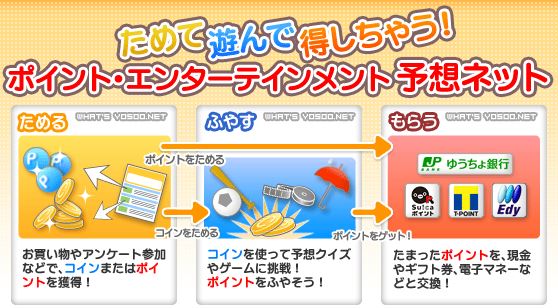 予想ゲーム・予想問題などでポイントを増やす、毎日やっても飽きのこない作りになっています。